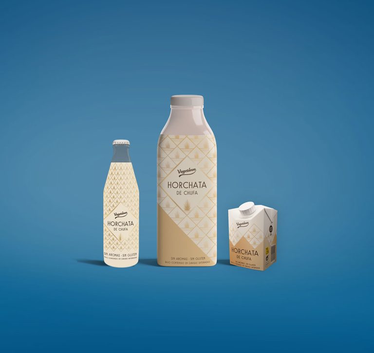 Durante mis prácticas académicas me pidieron que diseñara varias opciones de packaging para una horchata de una filial de Asturiana. Esta opción fue la elegida para su horchata, la cual también se adaptó al brick de litro y al brick pequeño.